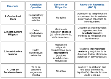 Esto implica que, aunque la empresa concluya que puede continuar operando, debe revelar información relevante sobre su continuidad. Si la decisión fue compleja, es necesario explicar los criterios aplicados.
