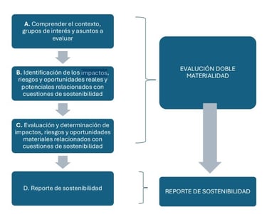 No hay un proceso o secuencia específica de pasos a seguir al realizar la evaluación de materialidad, ya que esto se deja al juicio de la empresa que tiene que definir el proceso que mejor refleja sus hechos y circunstancias;