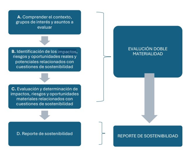 Una evaluación de materialidad eficiente incluye los siguientes pasos: a. comprender el contexto; b. identificación de IRO reales y potenciales relacionados con asuntos de sostenibilidad; c. evaluación y determinación de los IRO relacionadas con asuntos de sostenibilidad; y d. reporte;