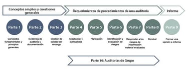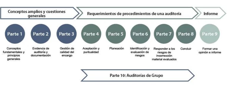 La norma se organiza en 10 partes, que siguen el flujo natural de un proceso de auditoría, desde la aceptación del cliente hasta la emisión del informe.
